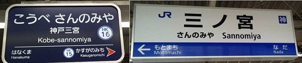 三宮駅前でご案内しているとき、特に若い人から「三ノ宮駅」の「ノ」が入るのと入らないでは、違う駅ですか? と聞かれることがある。遠くから来られた人には不安になるのだろう。答えは大雑把にいえば同じ場所です。JRとその関連機関が「三ノ宮」でそれ以外の大多数が「三宮」になっている。最近私鉄で「神戸三宮」という駅名を使うようになっている。 そもそも明治時代に今の元町駅付近に国鉄(省線)の駅が出来た時、近くにある「三宮神社」から「三宮」としたが、その際、読みやすく、発音通りに「ノ」を入れて「三ノ宮駅」にしたようだ。 JRでは同じようなことが「西ノ宮駅」にあったが、西宮市民と市からの強い要請で今は「西宮駅」に変更されている。JRの各駅にある料金表示の看板の書き換えなど莫大な費用が掛かるわけだから、なぜ同時に変更しなかったのか悔やまれる。 それでなくても、新幹線の「新神戸駅」が「三ノ宮駅」に隣接している、あるいはJR線で行けると思うお客様もいたり、更には「神戸駅」「高速神戸駅」「三宮駅」「神戸三宮駅」「三ノ宮駅」「新神戸駅」などの位置関係で迷われる。 また、JRの西口と阪急の東口がほぼ同じ場所でありながら、地名が「琴ノ緒町」と「加納町」にあり、いずれもが「三宮町」にない、という旅人にとっての交通難所になっている。 |