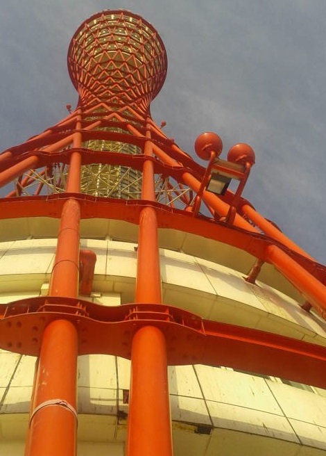 「鉄塔の美女」とも称されている。その骨格をなす鉄のパイプ
